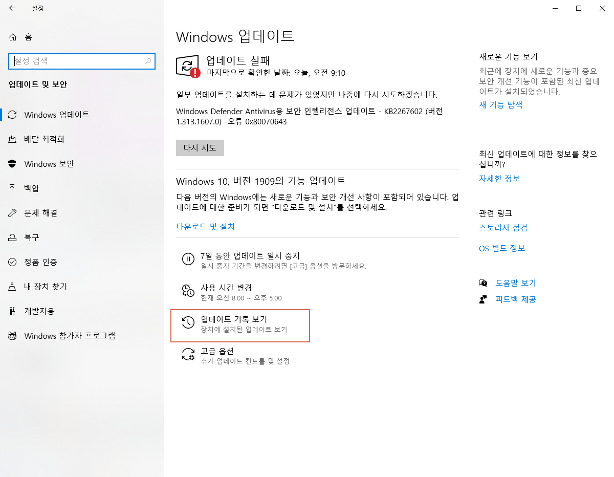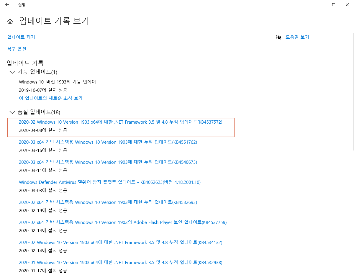 => 저는 4월 8일에 최종 업데이트를 했고, 메모리 누수가 일어나던 시기는 4월 14일 정도 였으니, 윈도우 10 업데이트 문제는 아닐 것으로 판단했습니다.